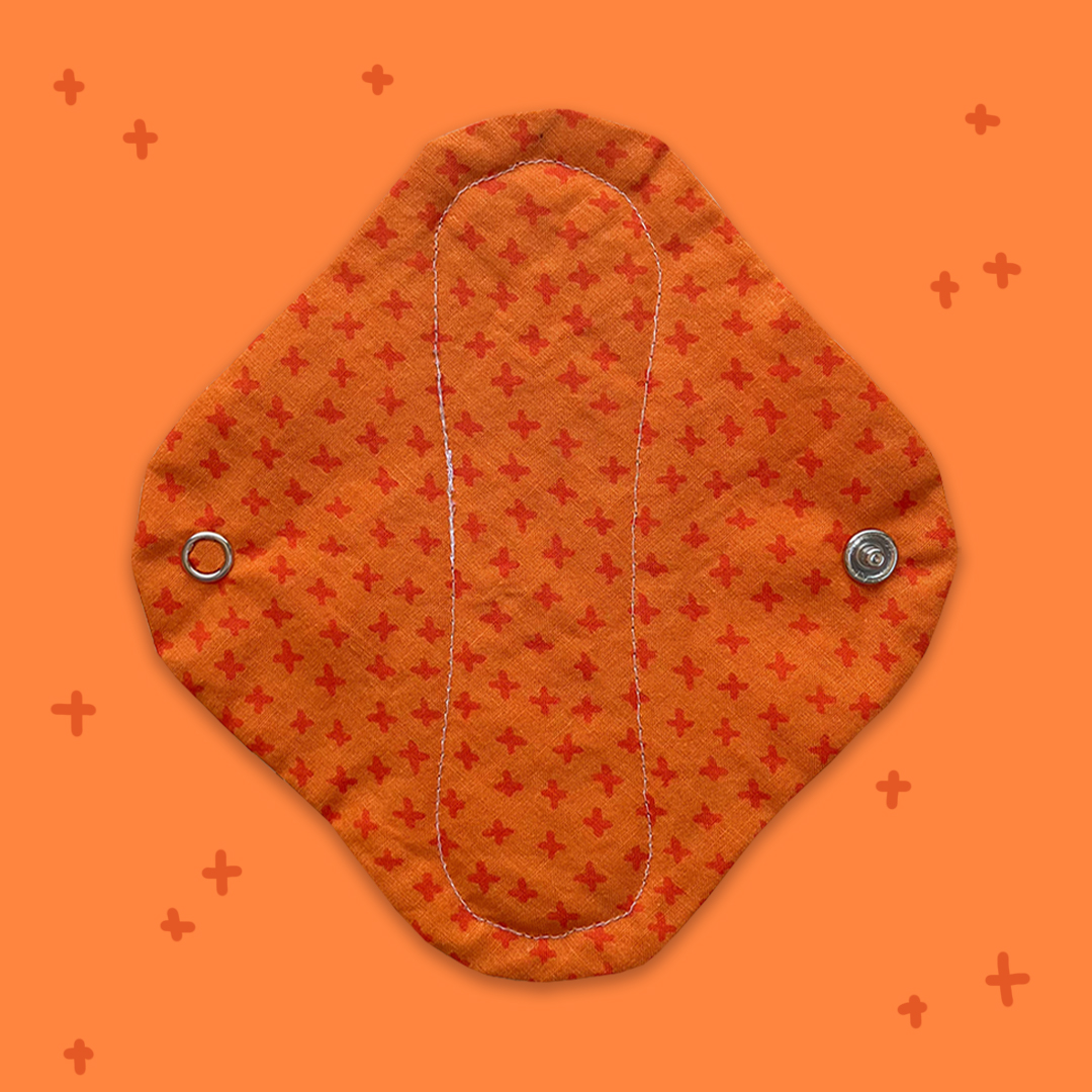 Regular pads contain four layers of cotton flannel and one layer of cotton terry cloth in the core of the pad. They don’t have any PUL inside. These pads are about 8 inches long. Since they are super absorbent and quick-drying, they are awesome for light to moderate flows. Also, they may also be used as a backup for a tampon or cup if you typically experience some moderate leakage.
