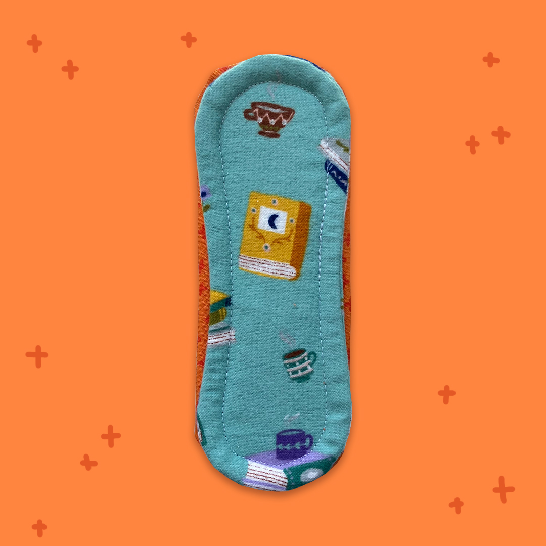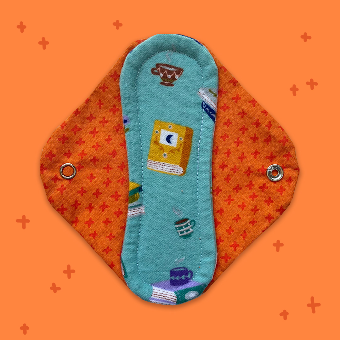 Heavy pads have four layers of cotton flannel, one layer of cotton terry cloth in the pad core, and a layer of PUL that covers the whole base of the pad. That includes the wings! They are about 9.5 inches long. Because they contain quick-drying cotton and leakproof PUL, these are rad for moderate to heavy flows. If you experience some irregularity in your flow and want that assurance of protection against leaks, then these may be a great fit for you too!